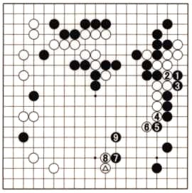 Two of the most common techniques are capping moves and the knight's moves. We've already seen examples of these in Dia. 1, namely, Black 1 and 3 (both are good moves, but Black 5 there is not). Look at Dia. 4 (Taken from Problem 10).